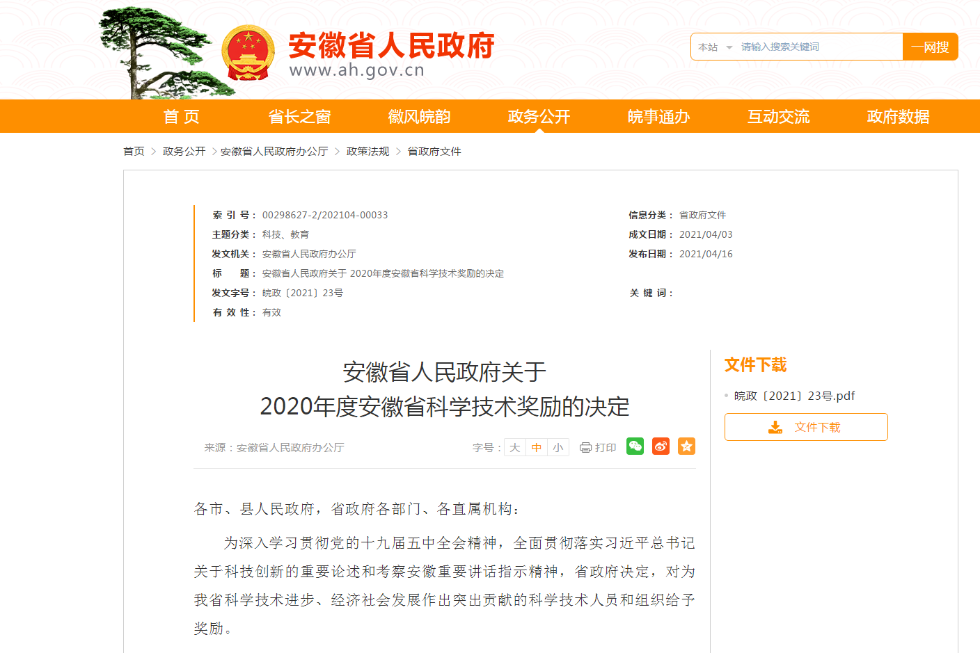 海螺創(chuàng)業(yè)榮獲安徽省科學(xué)技術(shù)獎