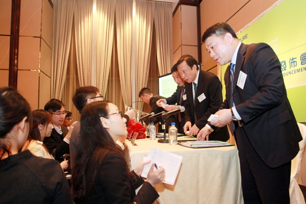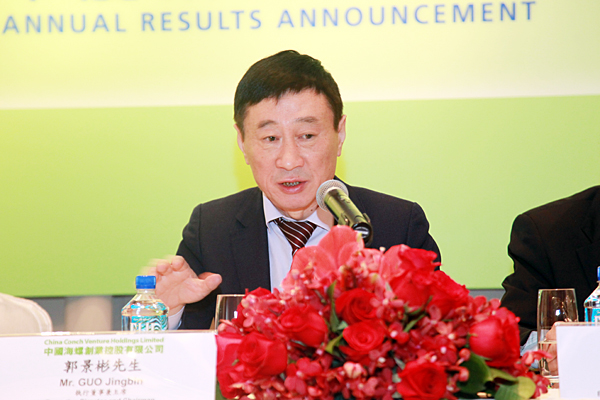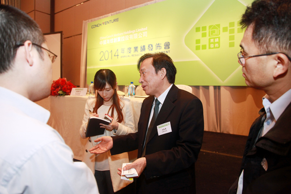 ? ? 海螺創(chuàng)業(yè)2014年度綜合業(yè)績(jī)一經(jīng)公布,便引起市場(chǎng)廣泛關(guān)注。為向投資者展示公司良好的經(jīng)營(yíng)業(yè)績(jī)以及各產(chǎn)業(yè)板塊的發(fā)展前景,加強(qiáng)與投資者的溝通交流,海螺創(chuàng)業(yè)于3月25日在香港四季酒店舉行了業(yè)績(jī)發(fā)布會(huì),公司董事長(zhǎng)郭景彬、總經(jīng)理紀(jì)勤應(yīng)、董事會(huì)秘書疏茂、財(cái)務(wù)部副部長(zhǎng)陳興強(qiáng)等出席了發(fā)布會(huì),近百余名來自各大投資機(jī)構(gòu)的投資者及分析員前來參會(huì)。
